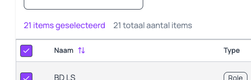 Klik links van de kolom Naam het vinkje zodat deze aan staat. Zo selecteer je alle Eisensets in deze Collectie.